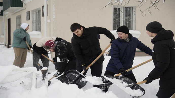 Birleşik Rusya gönüllüleri, Adıgeya'da yoğun kar yağışının ardından oluşan hasarın temizlenmesine yardımcı oluyor.